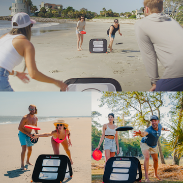 Disc Warrior® is a new ultra-portable outdoor game that combines the greatest elements of cornhole with flying discs and adds in some fun unique twists! It is the only disc game on the market that truly tests your target accuracy! Best of all people of any age and skill level can play. Disc Warrior is perfect for the backyard, beach, park, campsite, tailgating, and more.
